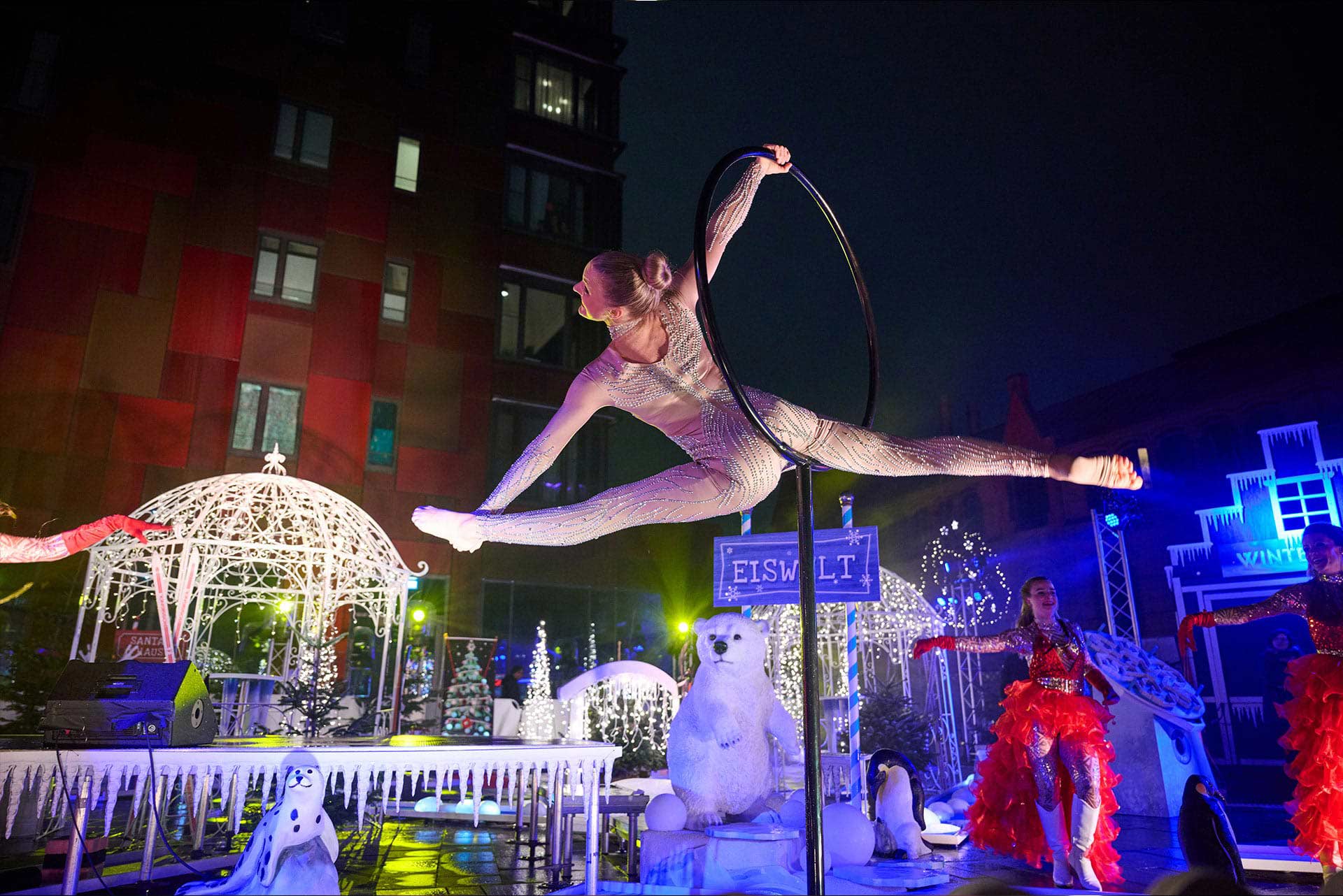 Auch 2016 sind wir bei der Weihnachtsmarkteröffnung in der Hafencity Hamburg dabei. Mit einer neuen Show unter der künstlerrischen Leitung von Susanne Morgenroth (Les Lionnes) setzten wir ein eindrucksvolles Highlight, welches die Gäste in eine Fantasiewelt aus Eis, Schnee & Feuer eintauchen ließ. Die Hamburger Hafencity als „Tor zur Welt“ erlebte eine multikulturelle Show aus Tango und Eiskunst, untermalt von fantastischen Spezialeffekten.