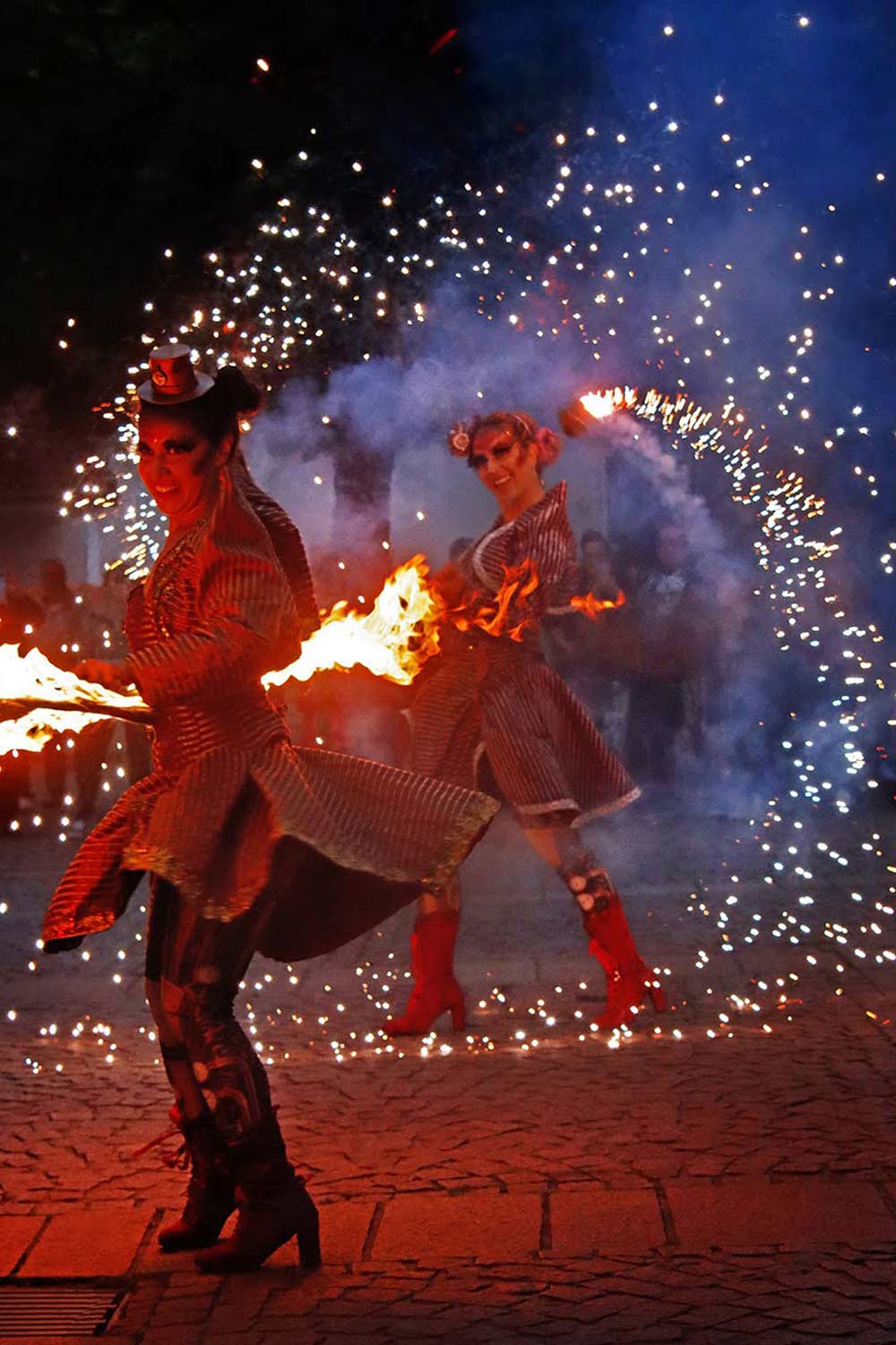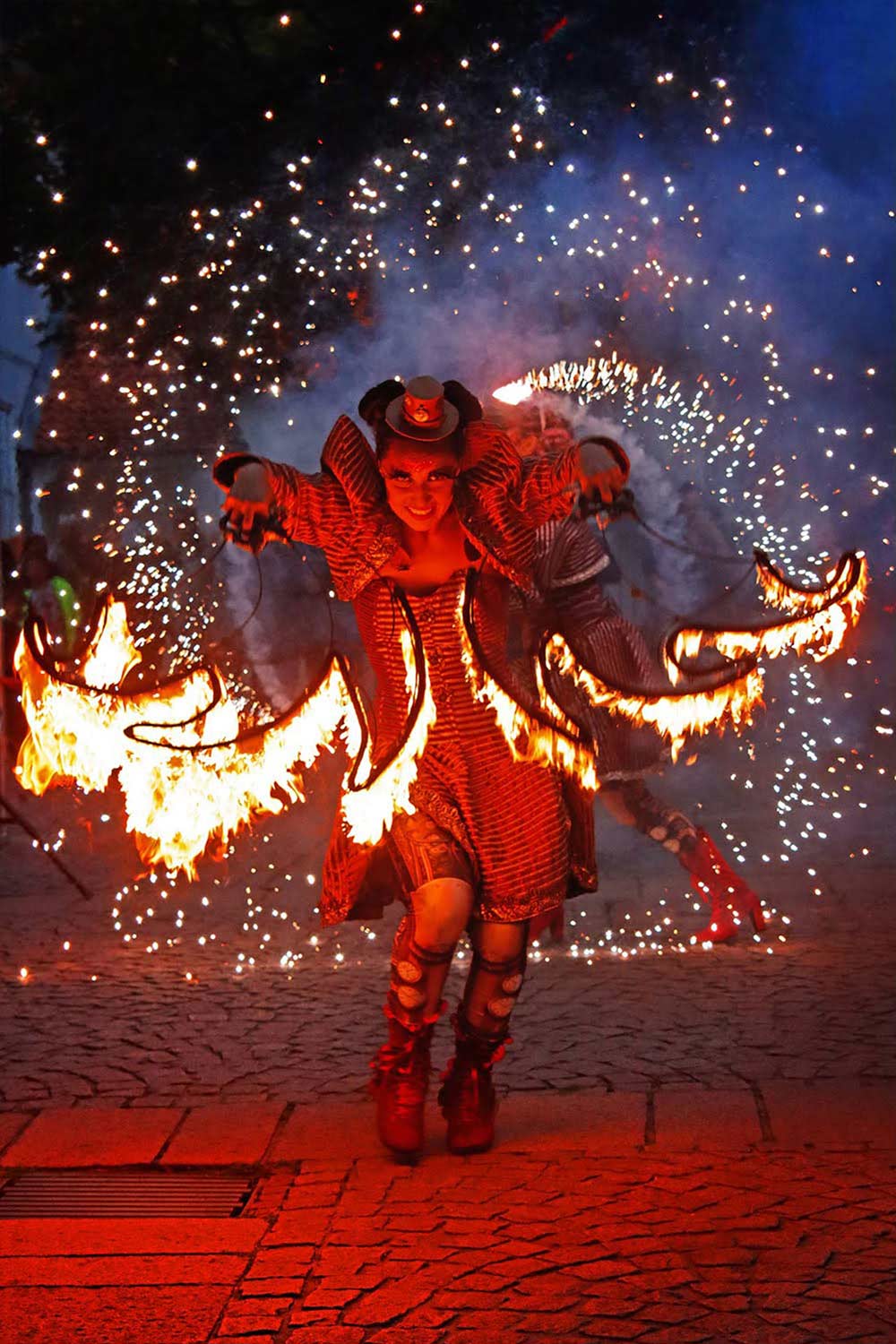 Für eine spektakuläre Feuershow gibt es viele Anlässe: Messe, Firmenfeier (Corporate Event) oder Stadtfest. Die Shows von Les Lionnes faszinieren das Publikum: Feuerartisten bändigen mit Leichtigkeit das Feuer und erzählen mit kraftvoller Feuerartistik eine ausdrucksstarke Geschichte.