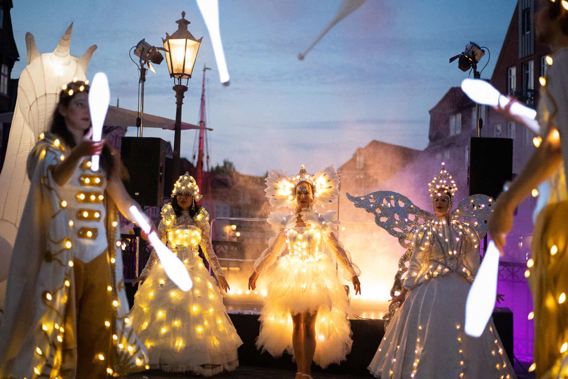 Lichterparaden, Feuer- & Eisshows, Weihnachtsparaden, Walkacts, Lasershows oder Corporate Events – einzigartig mit Les Lionnes.